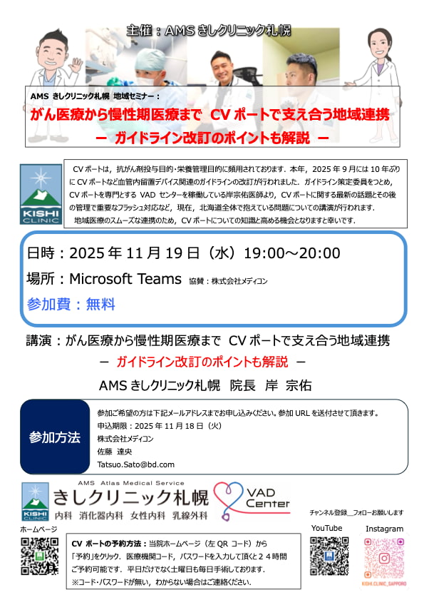 2025年11月19日(水)19時から,第2回 CVポートについての地域セミナーとして,ネット講演会を主催させて頂き,たくさんの医療関係者様に御参加頂き,誠にありがとうございました.